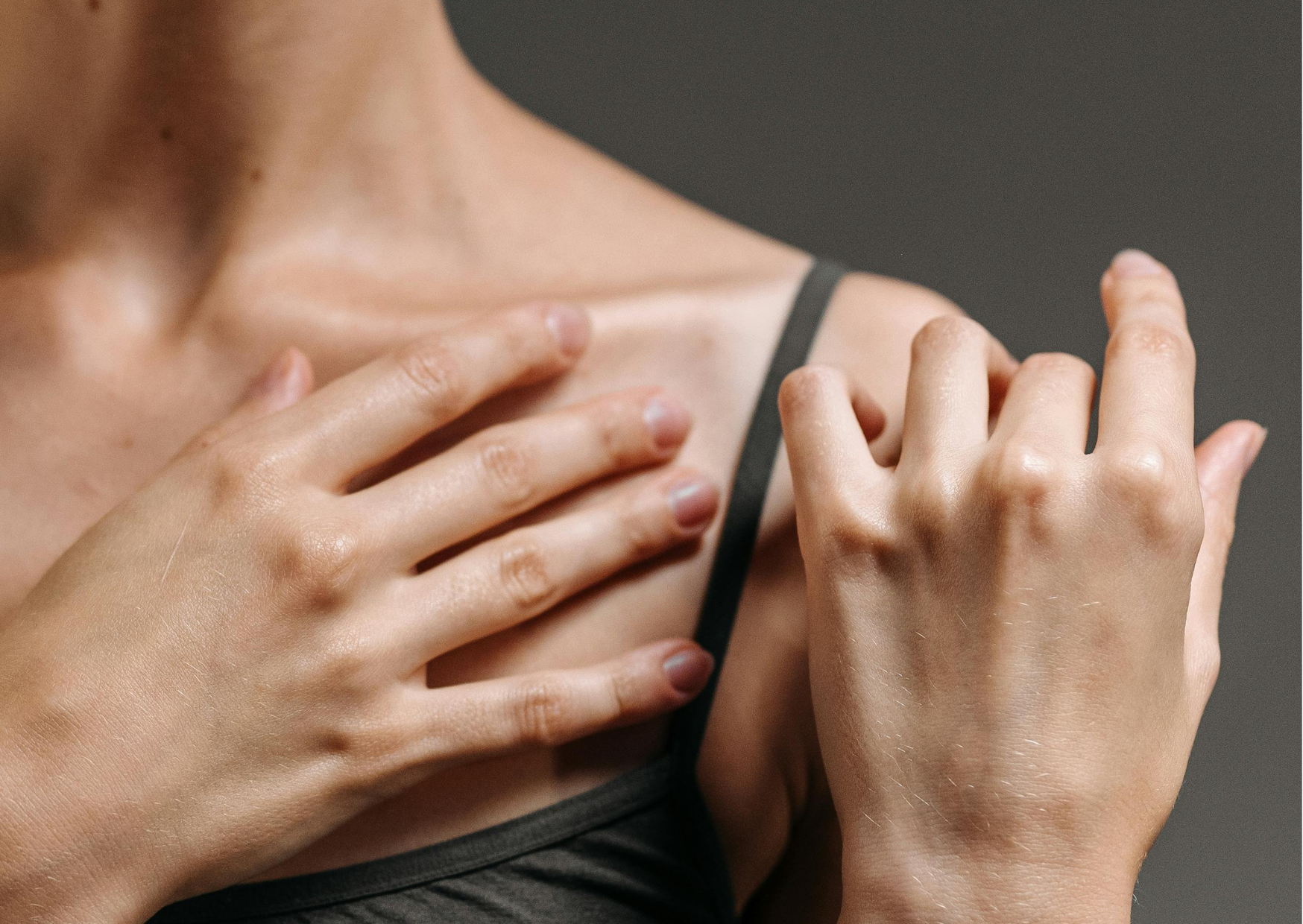 Coloca los dedos índice y medio de cada mano sobre las clavículas.